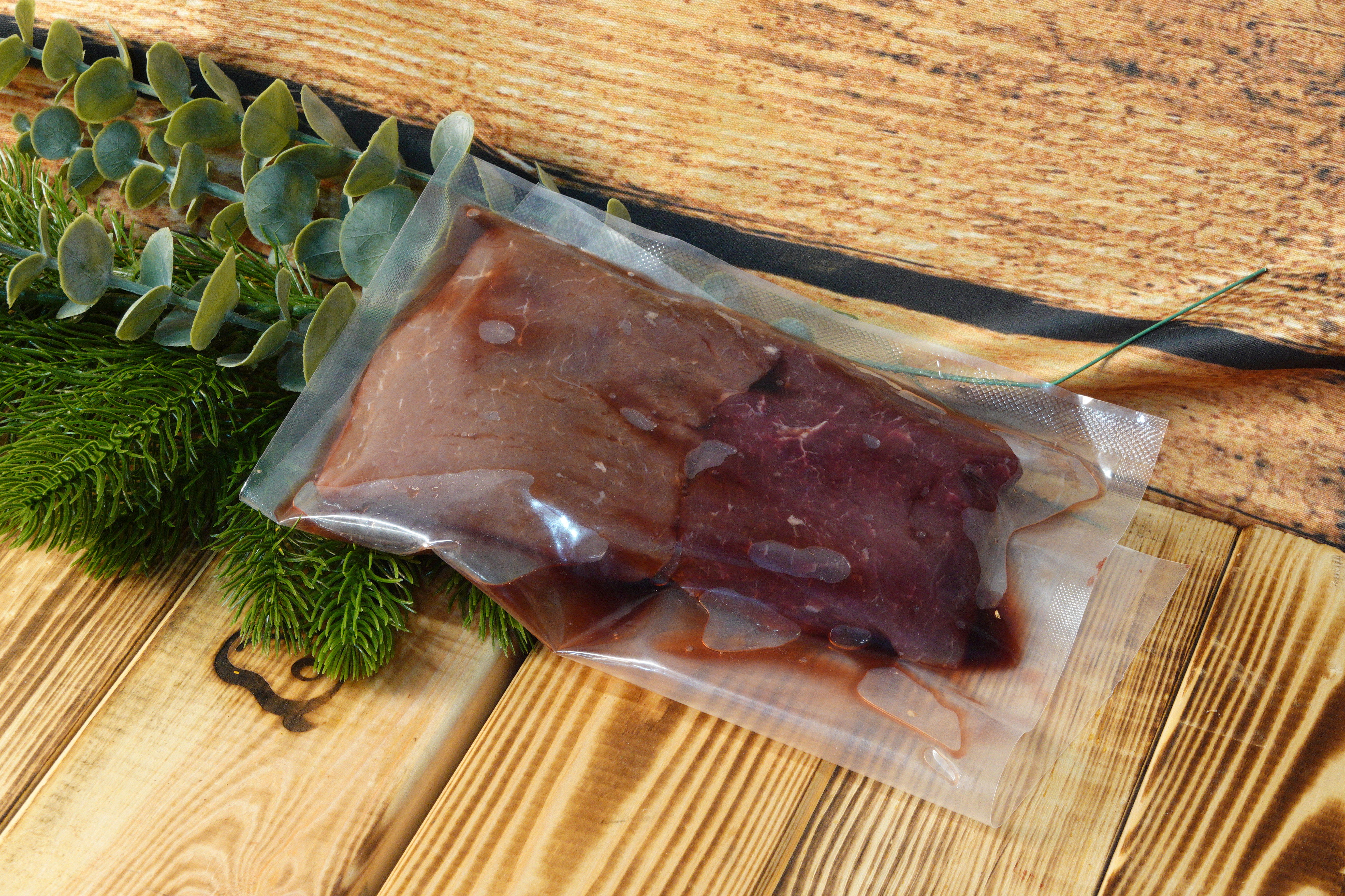 Стриплойн из марала от ДикоЕд – это истинно мужское блюдо популярное у североамериканских шеф-поваров. По сути – это стейк из поясничного отдела молодой оленины. Отличительные свойства – с одного края кусок мяса имеет жировую прослойку, которая придает приготовленному блюду сочности. Срезав его, можно получить абсолютно постный стейк – дело вкуса. Благодаря популярности в Штатах, стриплойн также называют нью-йоркским стейком.