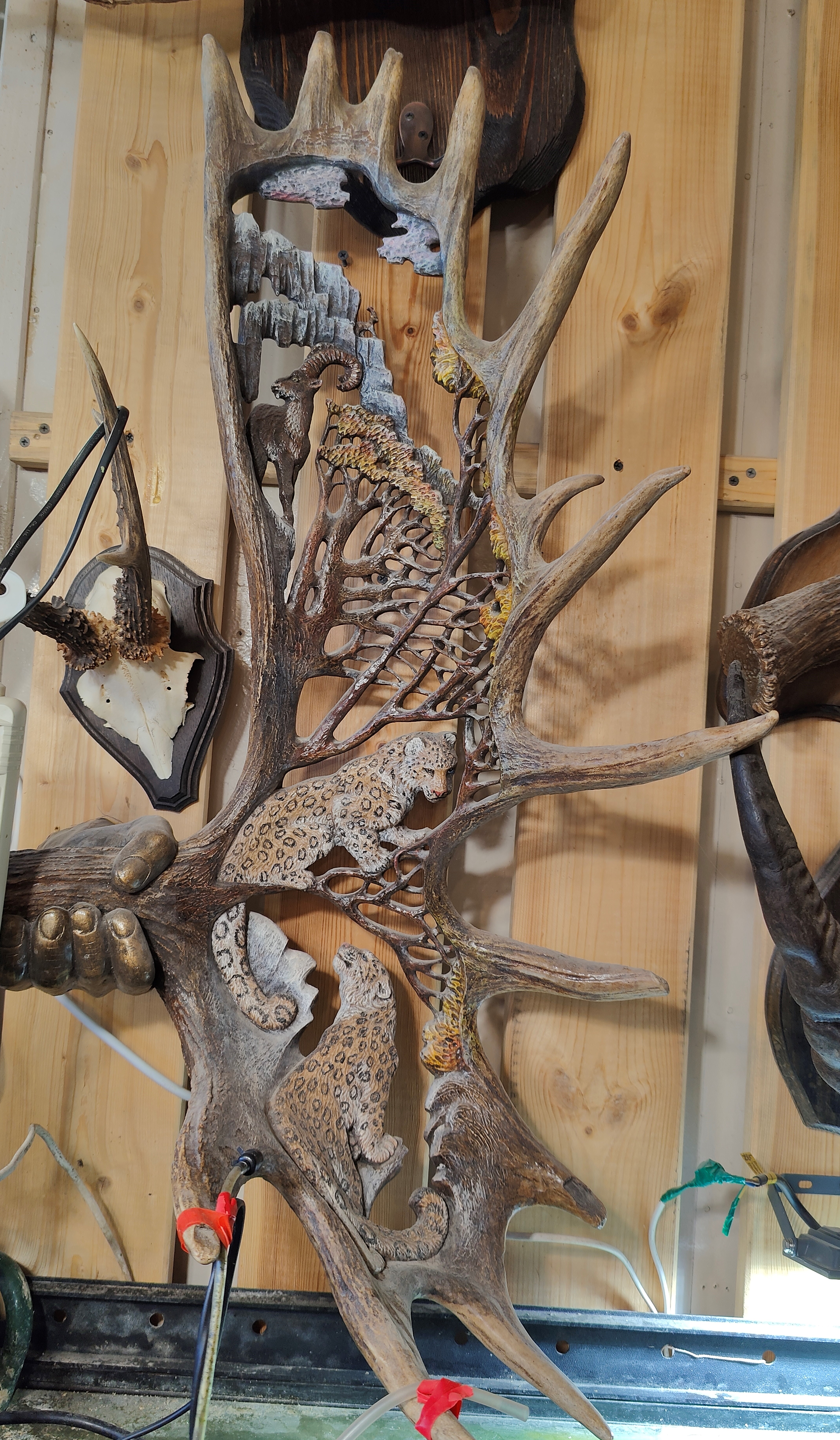 Рог лося с барсом